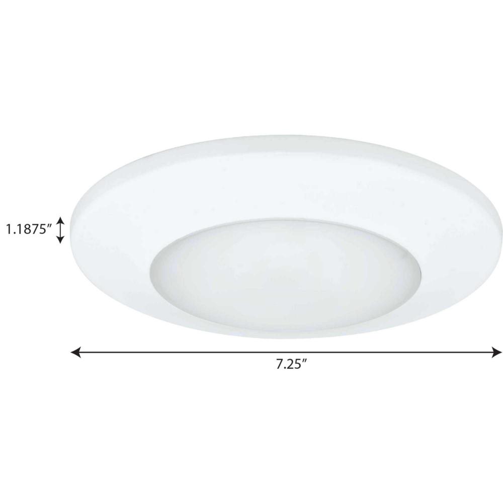 White finish.;Diffused polycarbonate lens controls direct glare from the LEDs.;Simple snap in installation for J-Box.;Die-cast aluminum construction with a powder coat paint finish.;1170 lumens (delivered), 90CRI, 3000K;Flicker-free dimming to 10% brightne