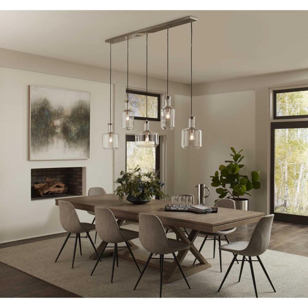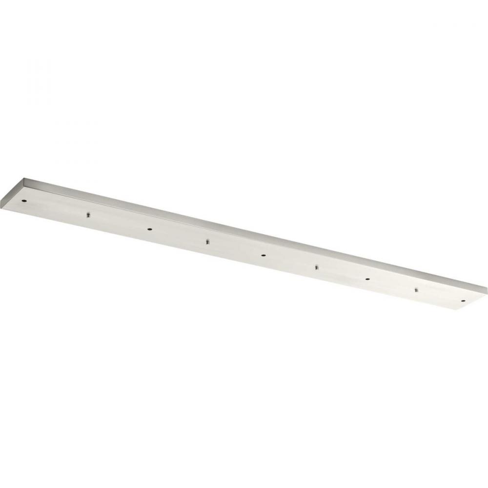Five-Light Linear pendant canopy.;Allows for the hanging of three to five pendants off of one outlet box;Brushed Nickel finish;Can be mounted staggered or in line.;Maximum pendant width for three lights is 18" each.;Maximum pendant width for five light