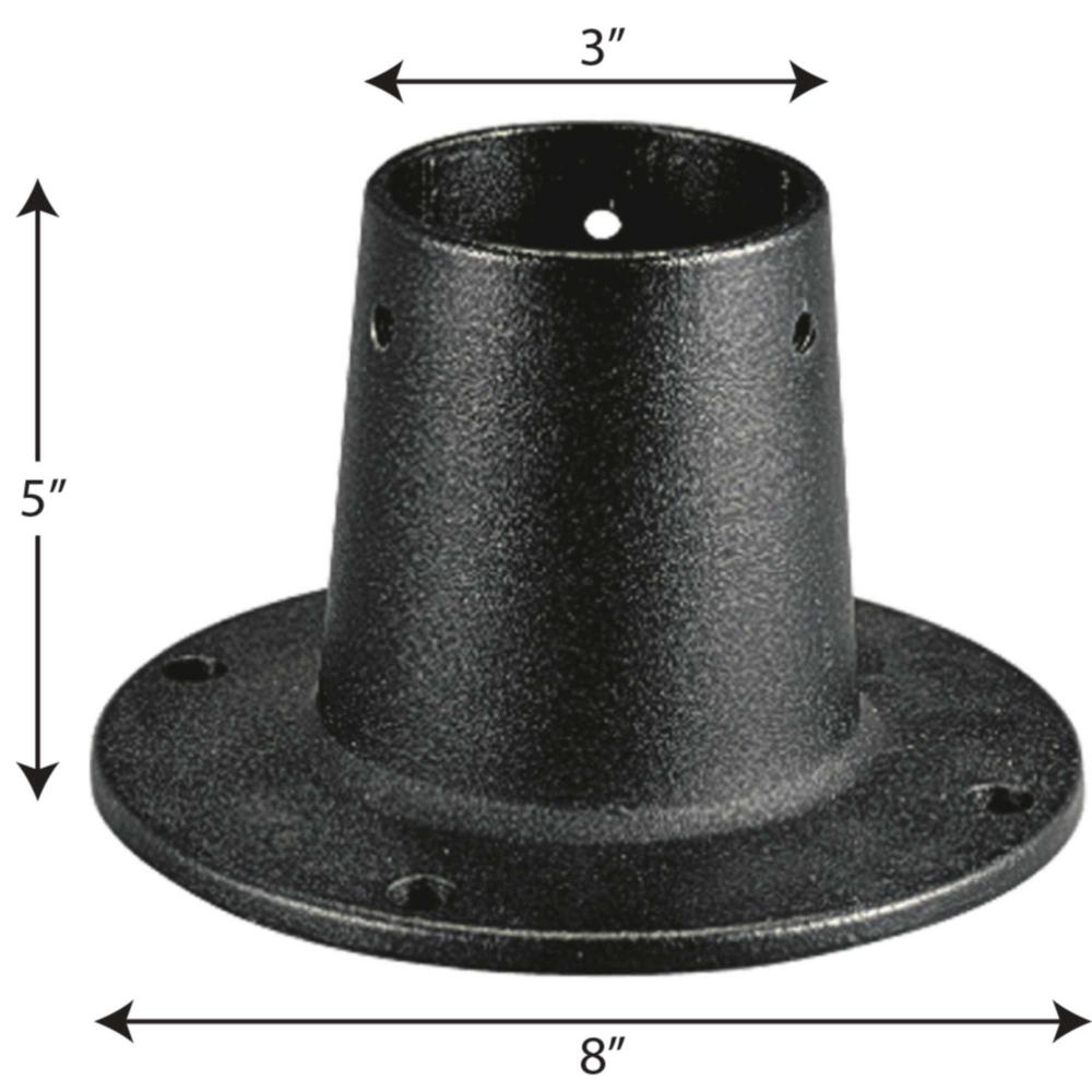 This cast aluminum surface mount post adapter will make a perfect addition to your home needs. Surface Mount Post Adapter. Flanged cast aluminum base for surface mounting round, 3 bottom O.D. posts. Anchor bolts and set screws included.