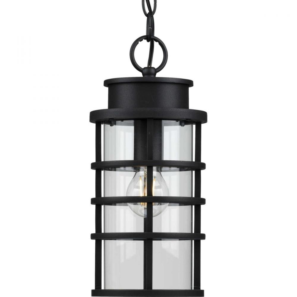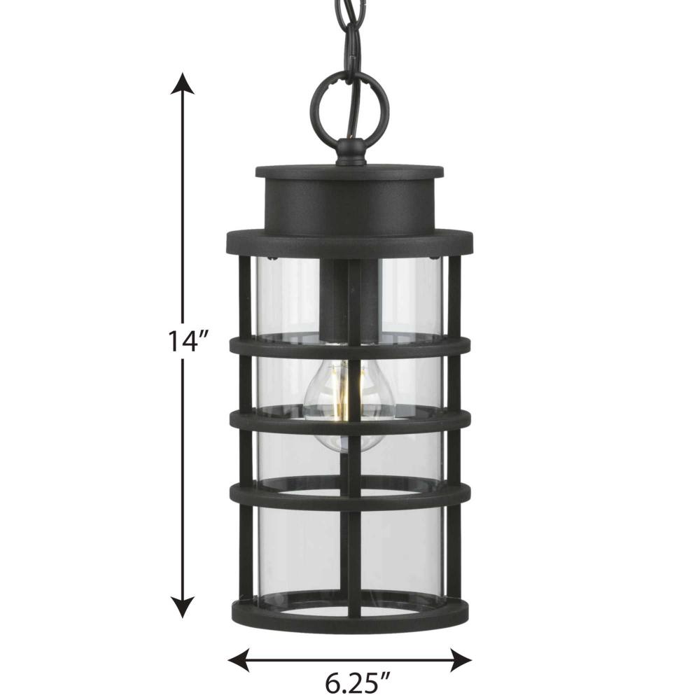This Hanging Lantern Distills Both Industrial And Artisan Influences With Its Signature Ribbed Black Frame Constructed From Durable Corrosion-Resistant, Composite Polymer. Inside The Ribs Rests An Elongated, Clear Glass Shade That Adds To The Light Fixture'S Modern Flair. The Design'S Blend Of Industrial And Coastal Inspiration Makes It A Perfect Light Fixture For Updating Your Favorite Spaces In And Around Your Home. Durashield By Progress Lighting Is Built To Last. Constructed From A Composite Material With Uv Protection, Durashield Holds Up Even In The Harshest Weather Conditions. This High-Performance Finish Has A 5-Year Warranty And Is Resistant To Rust, Corrosion, And Fading.