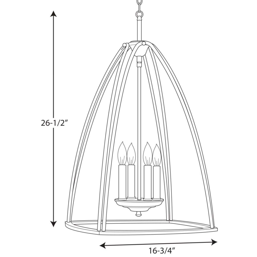 The four-light 16-3/4" foyer in the Tally Collection embraces a simplified classic form that is updated with modern inspiration. The open foyer with the four-light cluster offer visual interest and enhance relaxed environments. This simple foyer goes with many styles and families in the Progress Lighting line. Brushed Nickel finish.