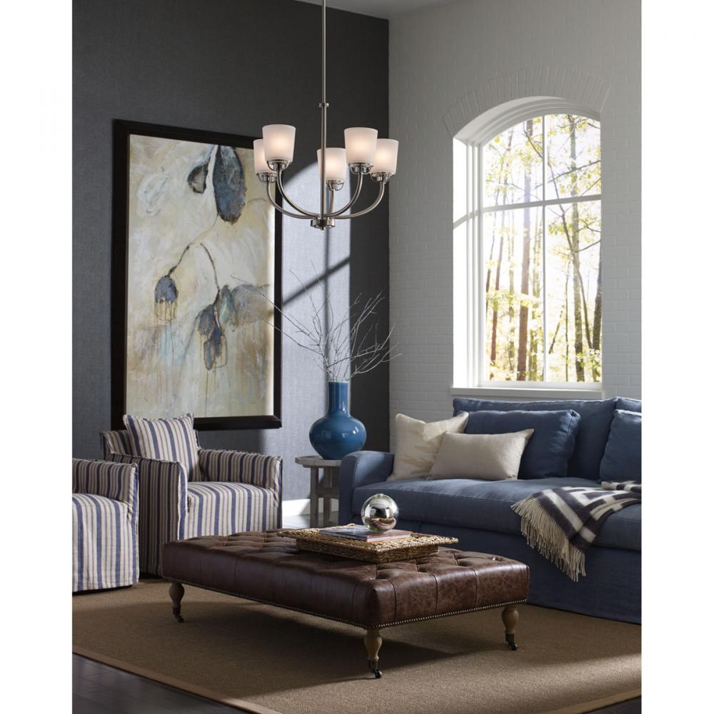 West Village Collection Five-Light Brushed Nickel Etched Double Prismatic Glass Farmhouse Chandelier