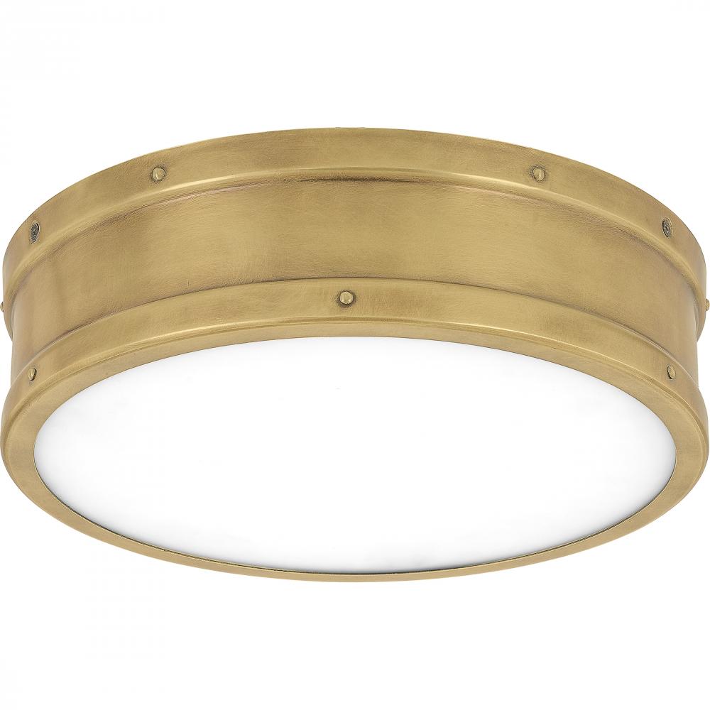 Flush mount led light weathered brass
