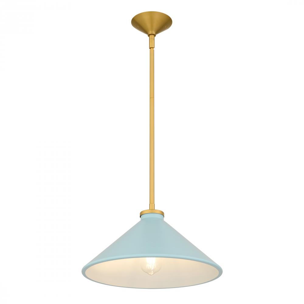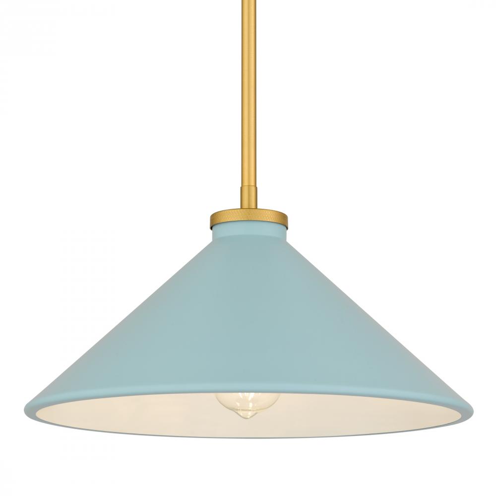 With a nod to mid-century charm, the Bradbury pendant light brings warmth and personality to any space. Its brushed gold accents gleam softly, setting off the crisp, conical shade available in a spectrum of colors—from serene light blue and fresh light g