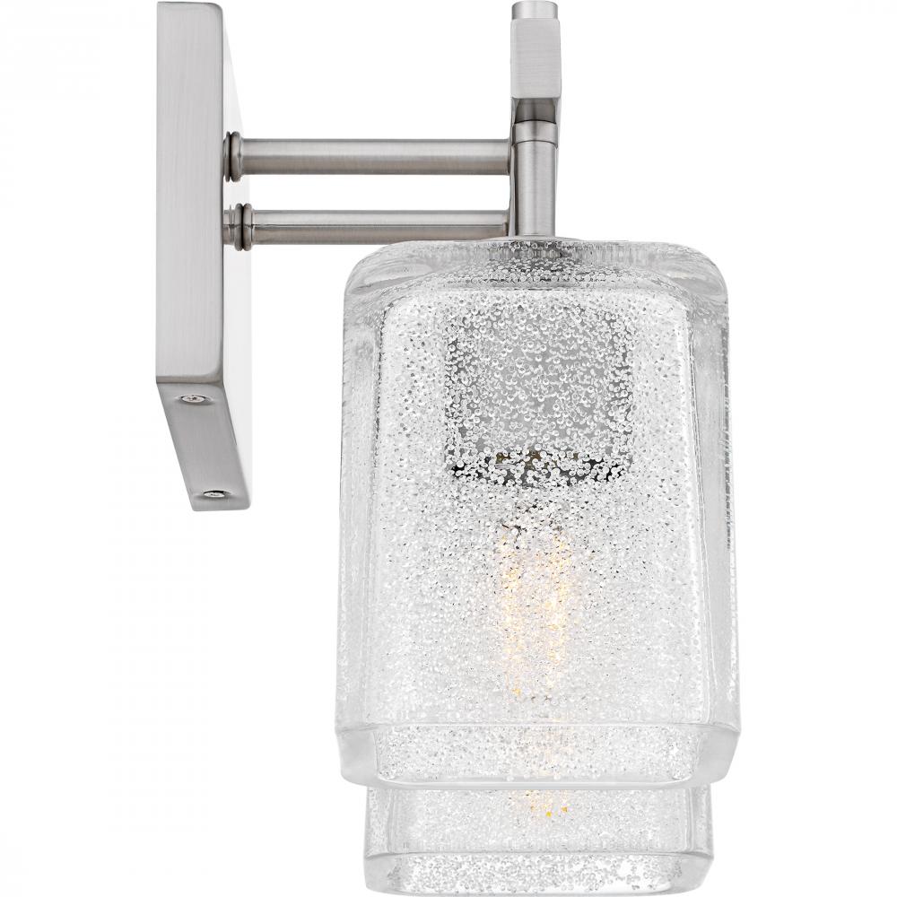The Brenthouse bath light features a clean, minimalist design with a striking visual impact. Square glass shades cast a soft, diffused glow while adding a touch of texture to the simple silhouette. The thick glass shades feature tiny crystals on the inside