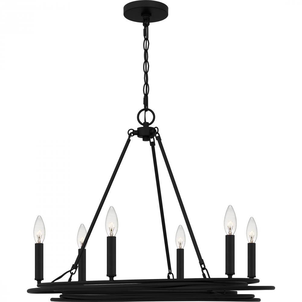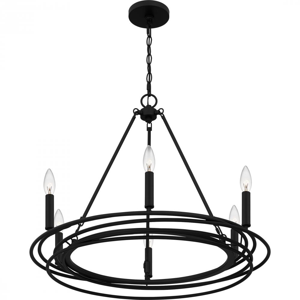 Calliope makes a bold industrial statement with its sculptural, geometric design. Matte black rings of different sizes encircle the round silhouette for a unique spiraling effect. Choose from a flush mount light with hammered etched glass or a candle-style