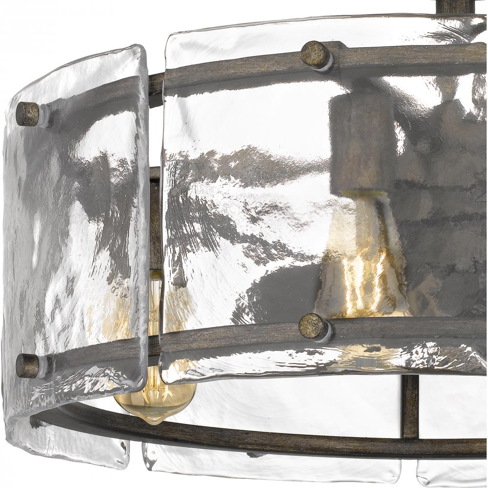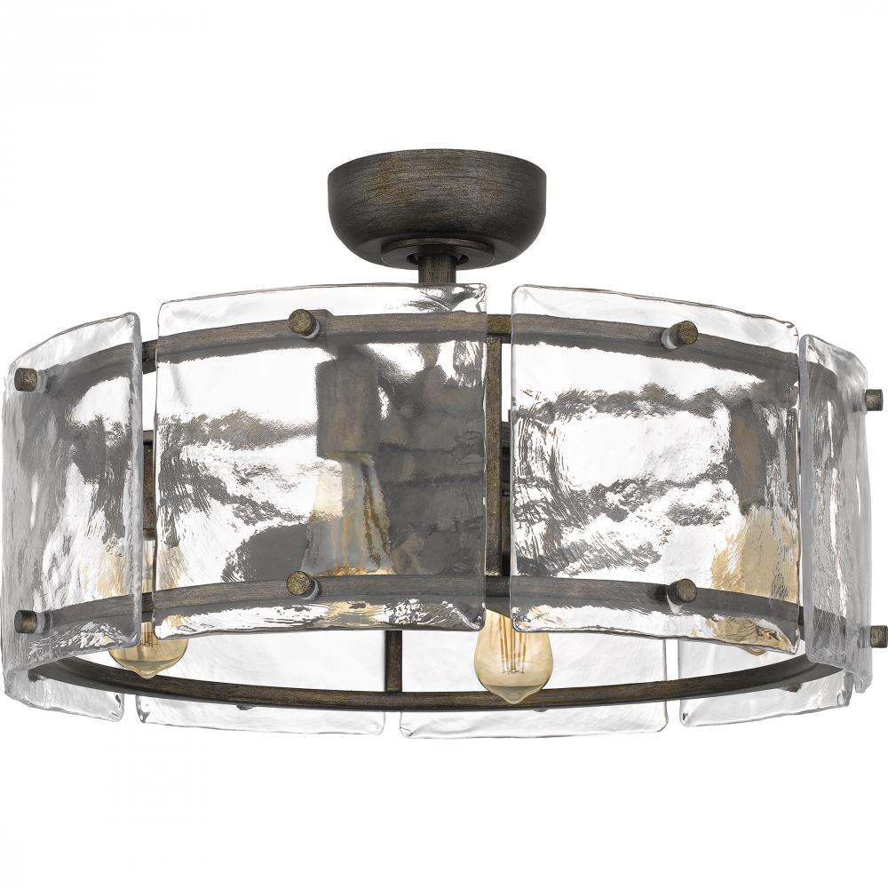 Panels of textured glass pair with an earth black finish to create the Fortress series. Offering simple yet striking design, Fortress is available as a mini pendant, semi-flush mount, pendant, or island light. As a fan light, this design comes in both eart