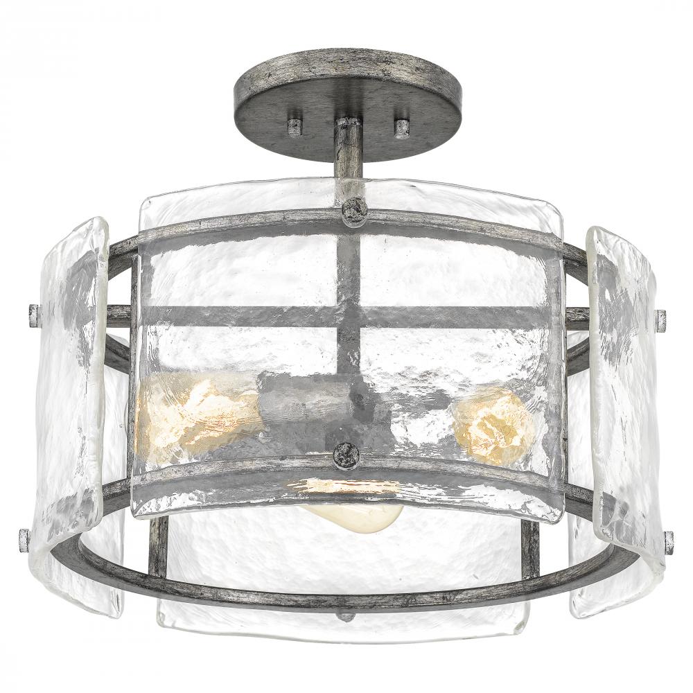 Semi-flush mount 3 light mottled silver