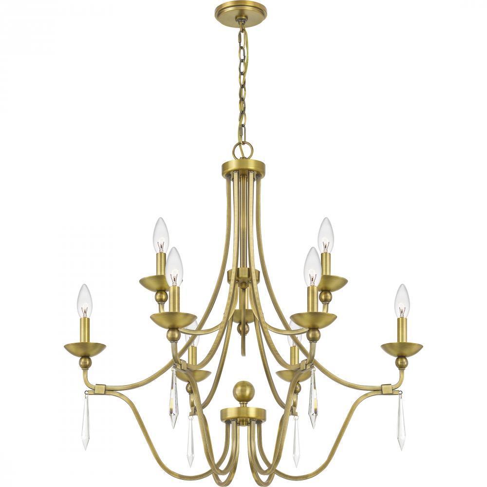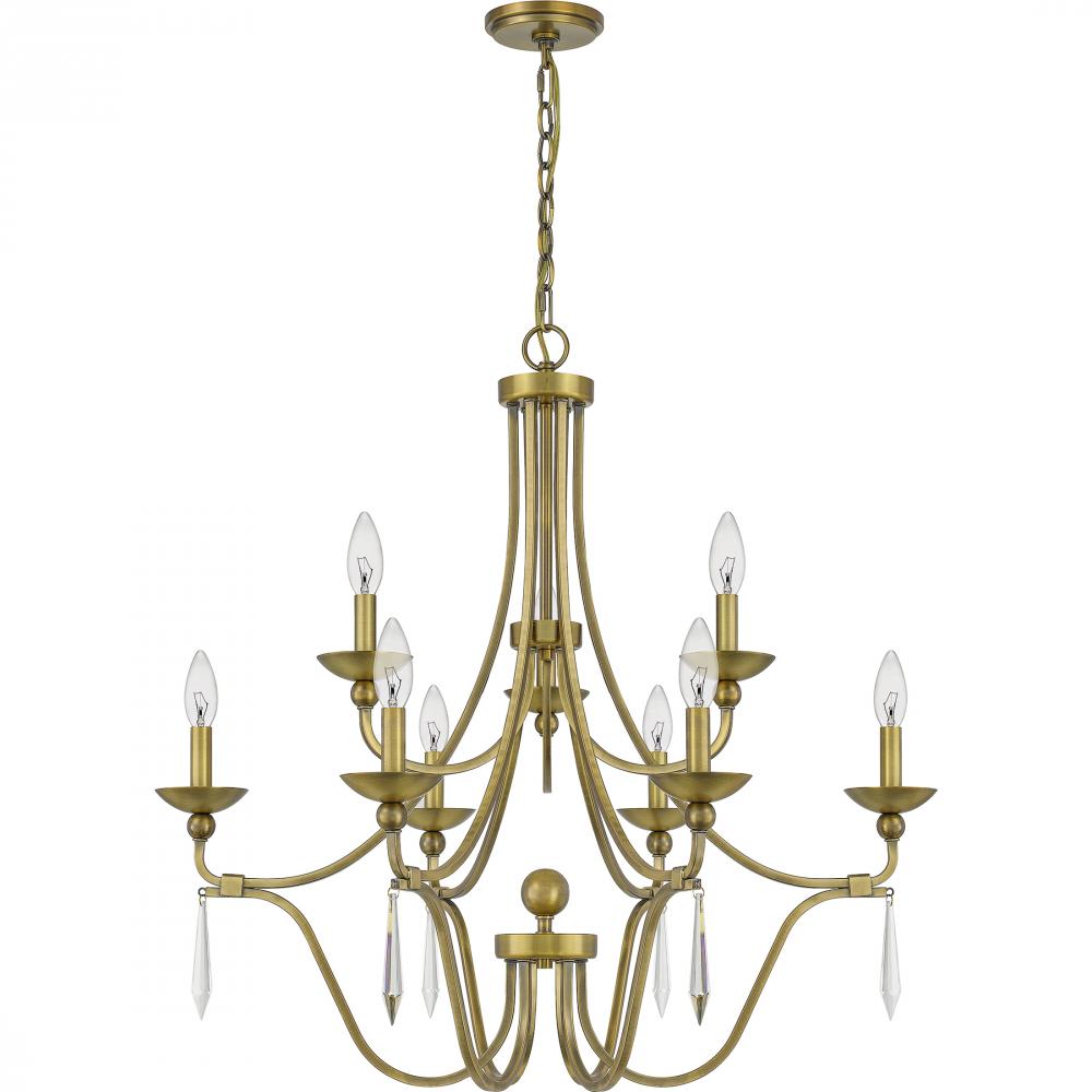 Chandelier 9 light aged brass