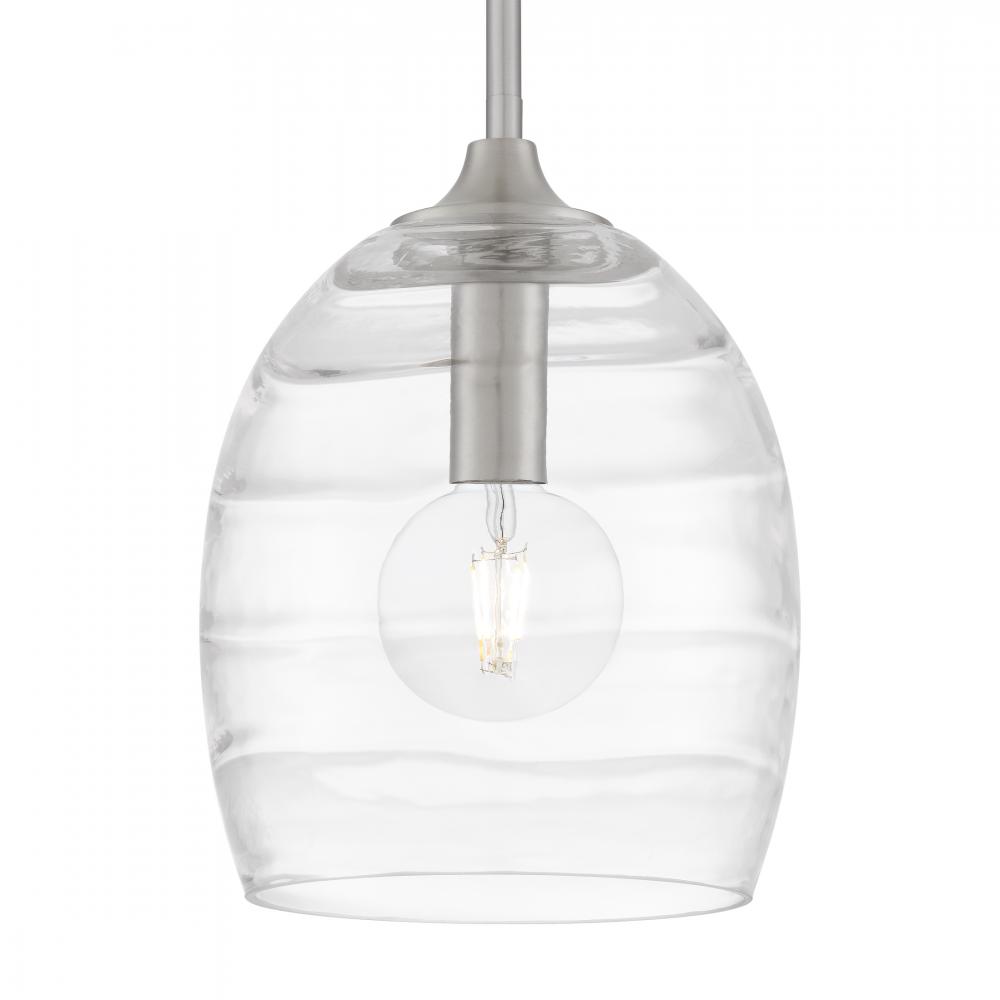 Clear optic glass shades ripple with a wave-like pattern in the Lucy collection, capturing the gentle rhythm of flowing water. Balanced by clean lines and a matte black finish, Lucy exudes both serenity and sophistication—an ideal accent for transitional