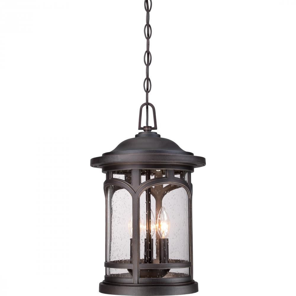 Marblehead is a rich masculine outdoor series and a welcome addition to the Quoizel Coastal Armour Collection. The stately form of the metal arches gives the clear seedy glass a window like appearance. Made from a new weather resistant outdoor composite