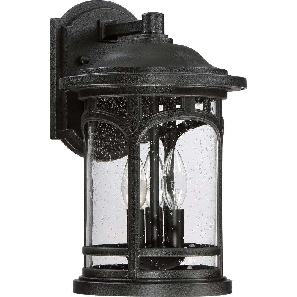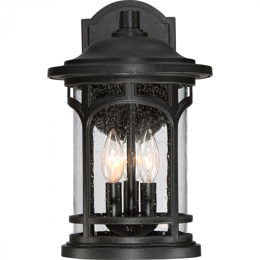 Marblehead is a rich masculine outdoor series and a welcome addition to the Quoizel Coastal Armour Collection. The stately form of the metal arches gives the clear seedy glass a window like appearance. Made from a new weather resistant outdoor composite