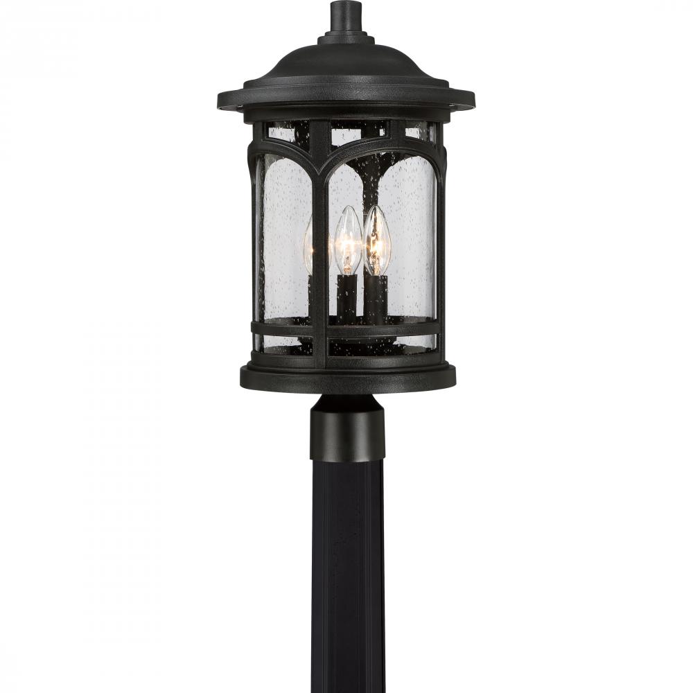 Marblehead is a rich masculine outdoor series and a welcome addition to the Quoizel Coastal Armour Collection. The stately form of the metal arches gives the clear seedy glass a window like appearance. Made from a new weather resistant outdoor composite