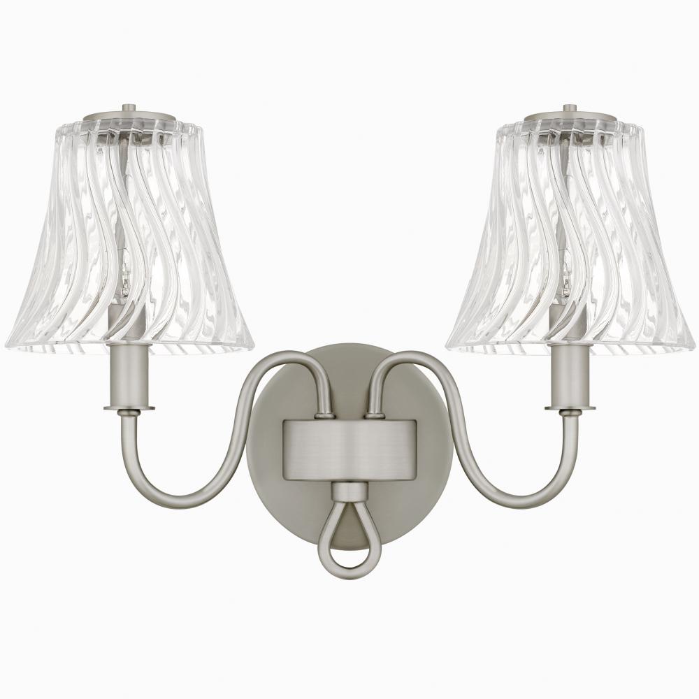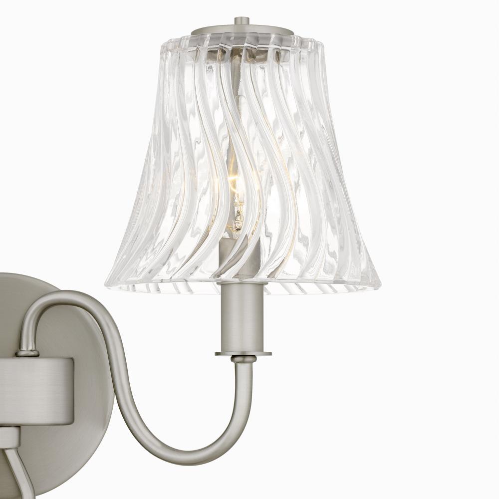 With its traditional styling and clean lines, McKinney is a perfect addition to any bathroom vanity setting. Choose from a brushed nickel finish with clear swirl glass or a matte black finish with etched swirl glass. The glass shades feature a fun twist de