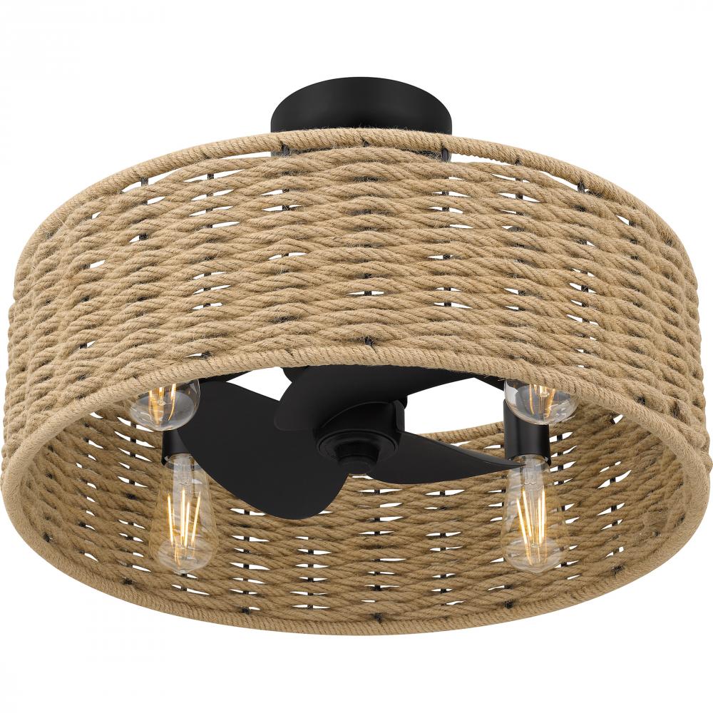 Form meets function in Islander. As part of the Quoizel Naturals series, the ceiling fan light exemplifies modern bohemian style with a hemp rope shade. A matte black finish completes the look, adding contrast to the natural shade. With a reversible three-