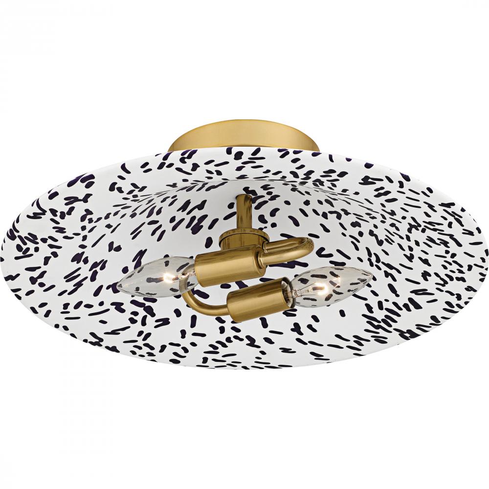 Flush mount 2 lights light gold blue dot