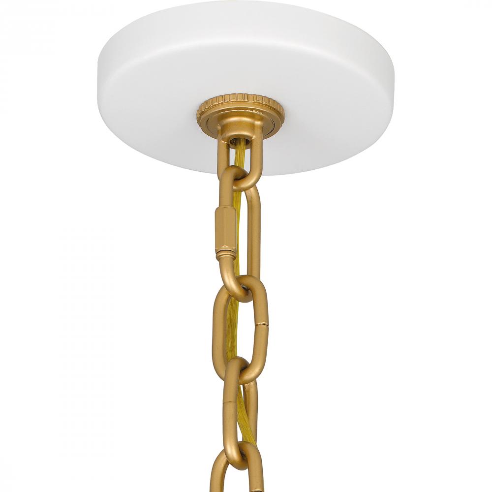 Raquel mini pendant lights offer an easy, stylish way to illuminate a kitchen island or bar area. The Raquel mini pendant features an industrial style-inspired metal shade and chunky chain design, available in all matte black or white with gold accents . H