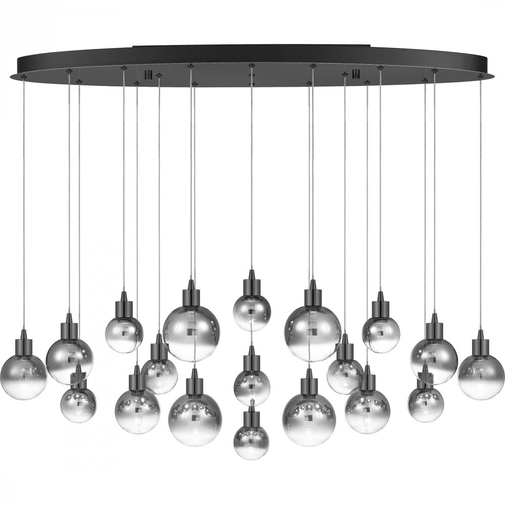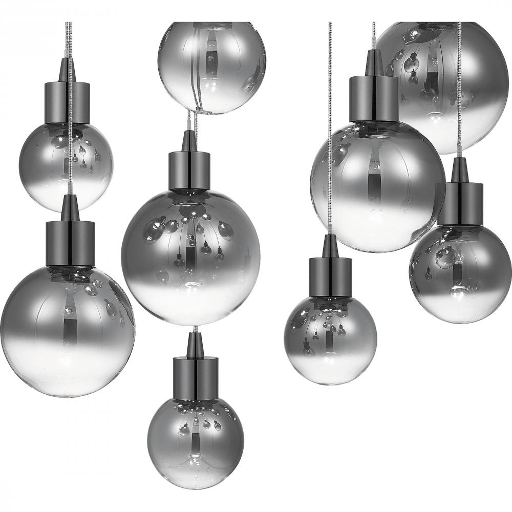Take your living space to the next level with the contemporary style of the Shadow collection. The smoke glass shades come in multiple sizes and are suspended at staggered heights for a dramatic look. Finished in Black Chrome and constructed using integrat