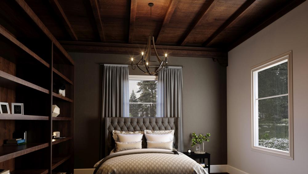 Traditional warmth meets industrial minimalism in the Shire collection. The rubbed black edges on the faux wood frame complements the rustic black finish of the inner rings. Curved arms and candelabra bulbs add classic charm to the chic simplicity of the d