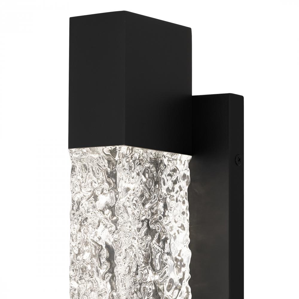 Add a touch of contemporary luxury to your homes exterior with Solace wall lanterns. The sleek silhouette is complemented by a solid piece of handmade clear textured glass, allowing the integrated LED light source to shine through brightly. The elongated m