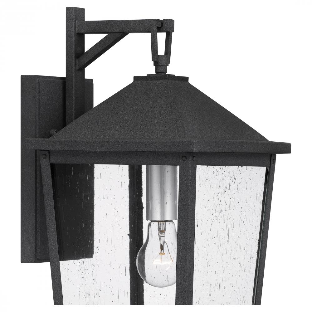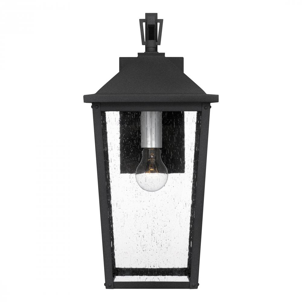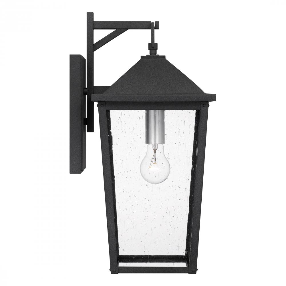 Clear seeded glass gives Stoneleigh a touch of whimsy. In a mottled black finish, this pendant design is otherwise stately and handsome. Suspend it within a portico to welcome guests in refined fashion.