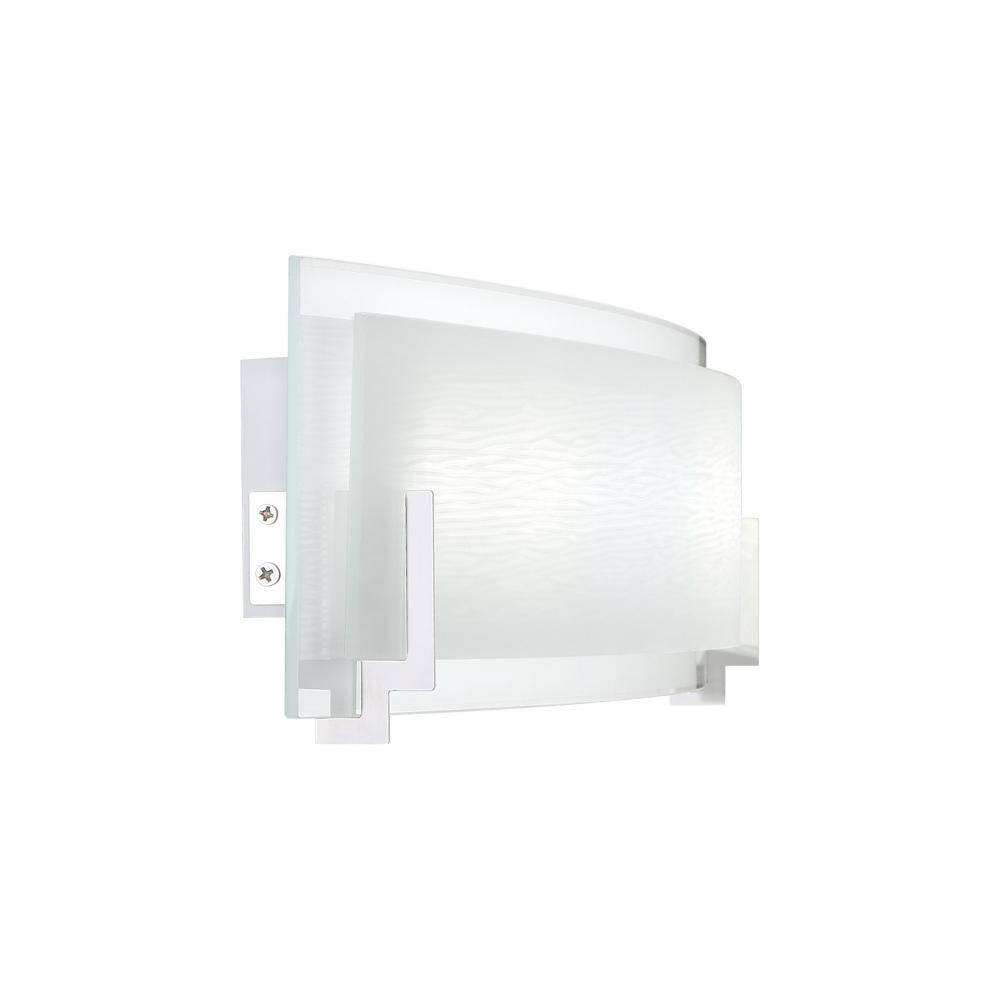 The Stream collection from Platinum by Quoizel offers integrated LED technology without sacrificing beauty. A frosted glass panel is layered behind a smaller panel printed with a whimsical woodgrain pattern. Slender brackets finished in polished chrome di