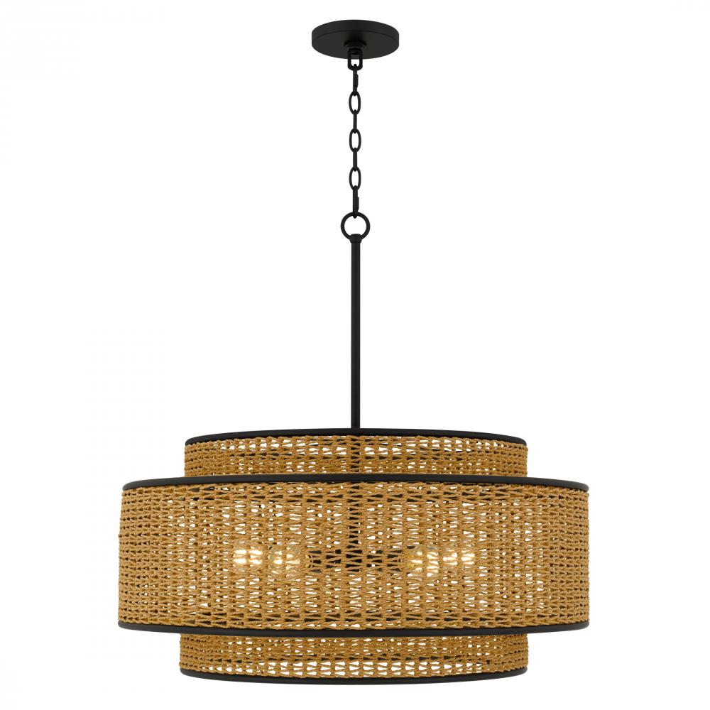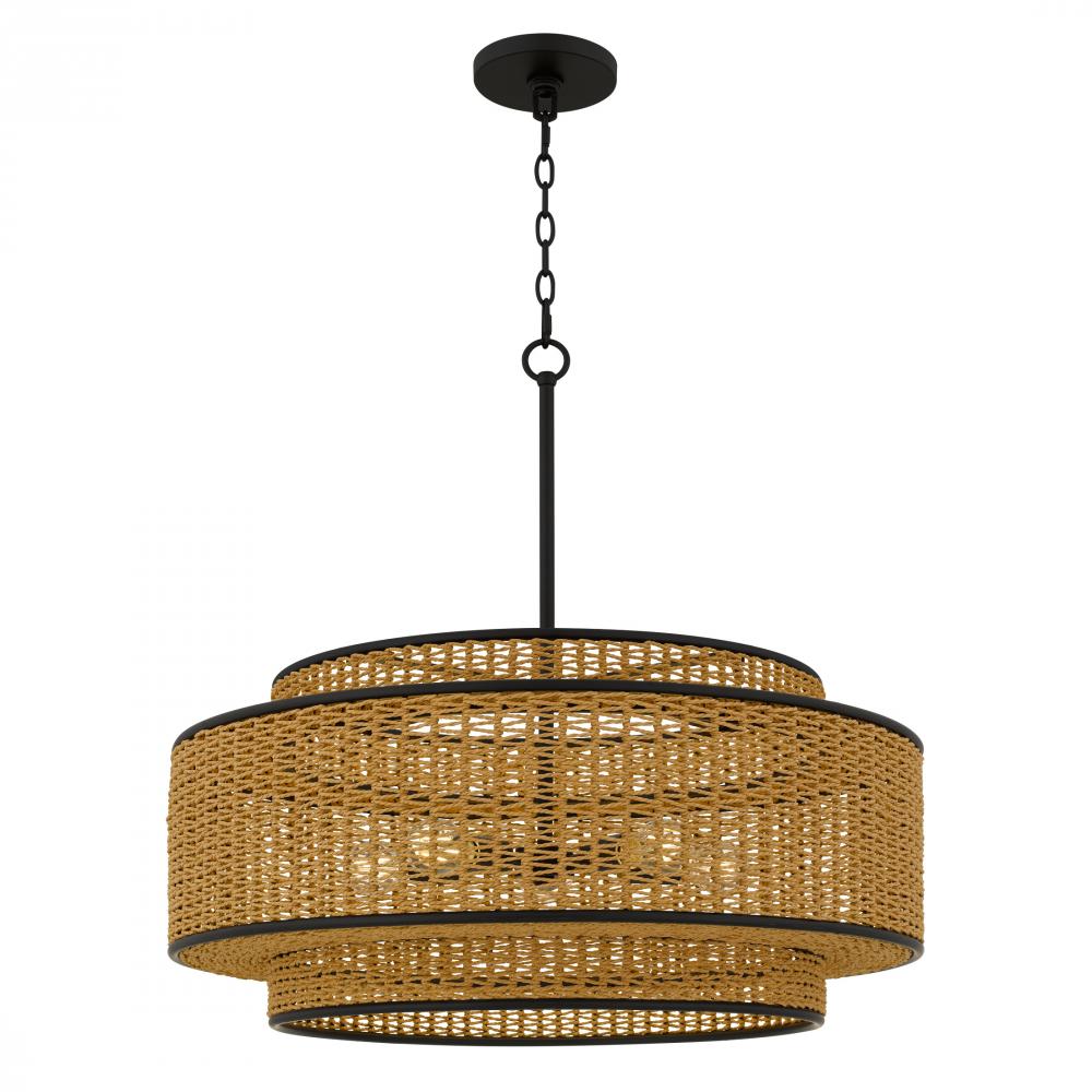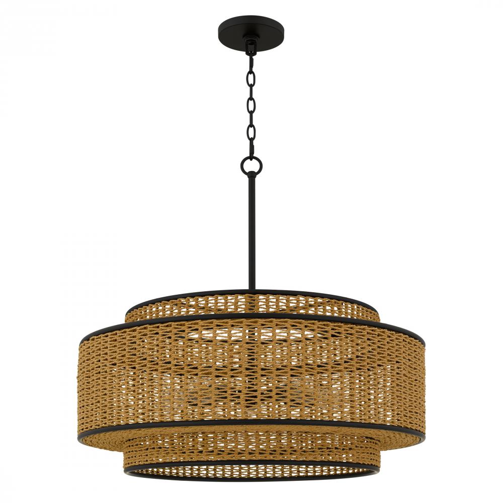 Part of the Quoizel Naturals collection, the Teton series brings coastal charm and natural textures to any space. Its classic drum silhouette is layered with subtle details, while the natural rope-wrapped shade adds depth and visual interest to the clean m