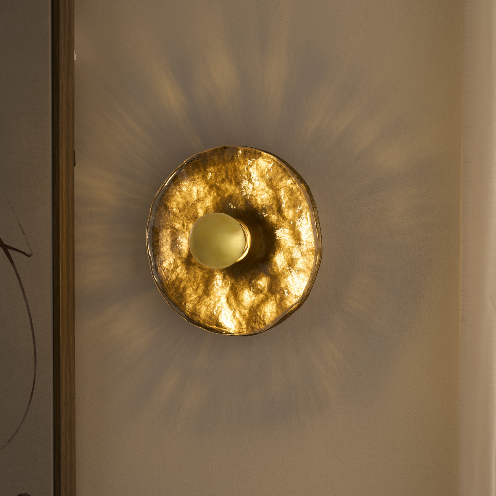 Bring contemporary character to any space with Del Rey. This modern wall sconce features artisan glass layered over a brushed brass finish, creating an ambient light display. It can also emit outward-facing light, offering a more direct illumination.