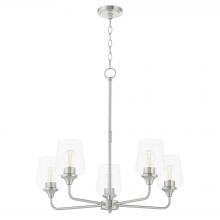 An addition to the Main Street collection of lighting, the Raymond series of pendants, wall mounts, vanities, and chandeliers offers versatile style and an uncomplicated design. Boost the ambiance of any room with tapered clear glass shades and delicate, simple details. Equipped with medium base lamps, the Raymond family is the right lighting solution for any homebuilder.