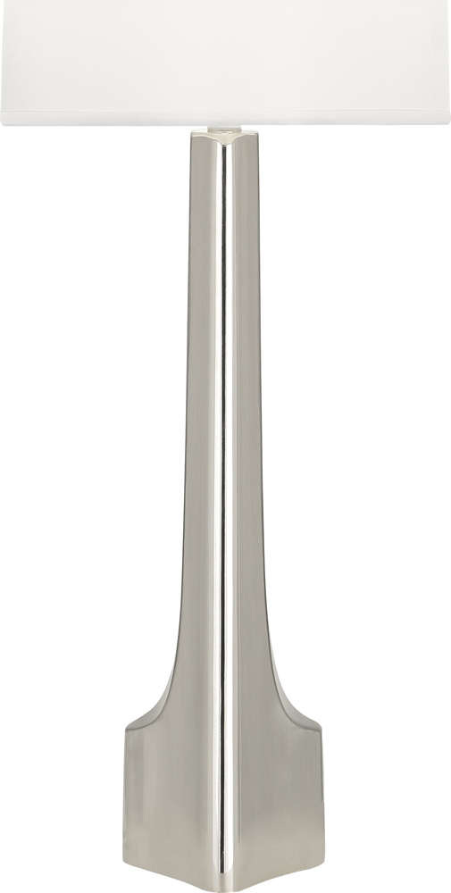 Margeaux's slender profile is accentuated with subtle and elegant curves. A brushed metal accent in the center of this design provides just the right amount of contrast Polished Nickel Finish with Matte Nickel Accents Margeaux Table Lamp with White Oval Organza Shade