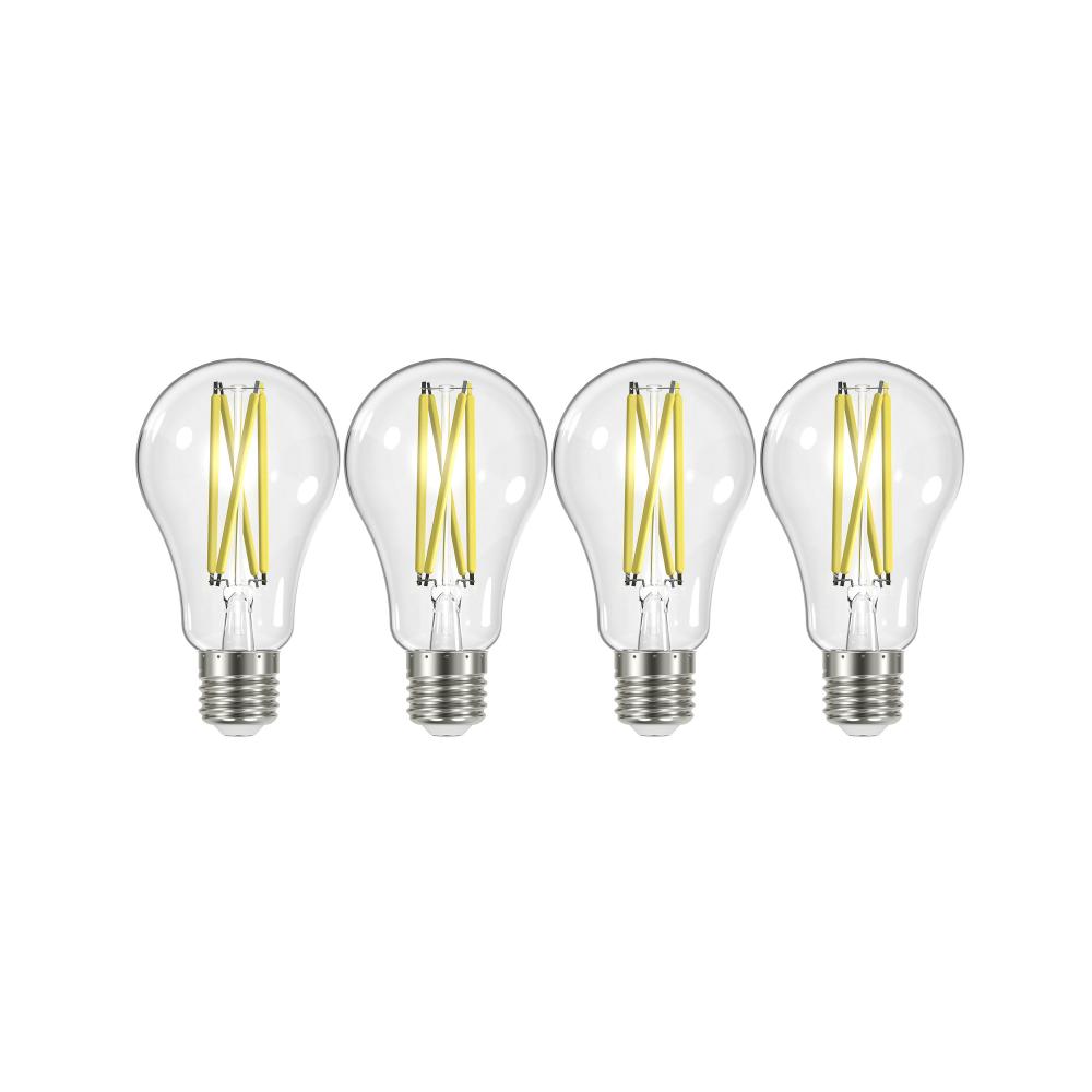 12.5 Watt A19 LED Filament; 100 Watt Replacement; Clear; Medium base; 3000K; 120 Volt; 4-Pack