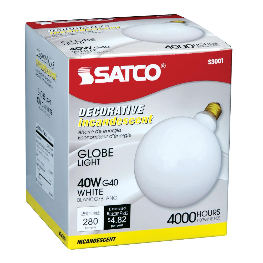 40 Watt G40 Incandescent; Gloss White; 4000 Average rated hours; 280 Lumens; Medium base; 120 Volt