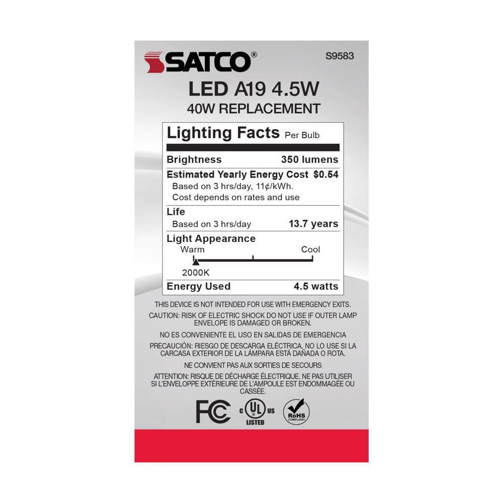 4.5 Watt A19 LED Filament; Amber; Medium base; 2000K; 350 Lumens; 120 Volt