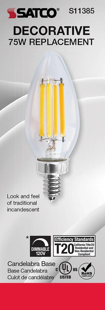 Satco's 8-watt LED bulb is an elegant lighting solution for the home. Perfect for chandeliers, use this dimmable lamp to illuminate living rooms, dining rooms, or anywhere else where a traditional look will complement decorative needs. The bulb has a b