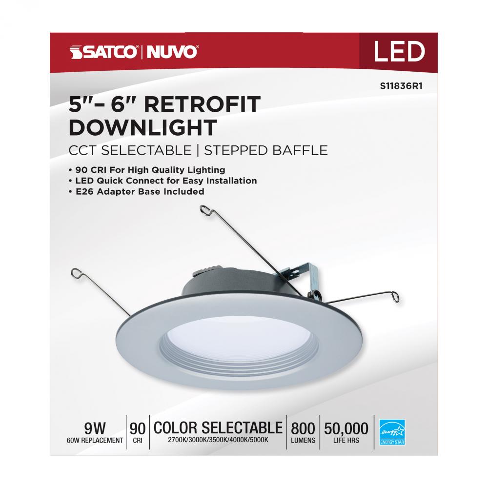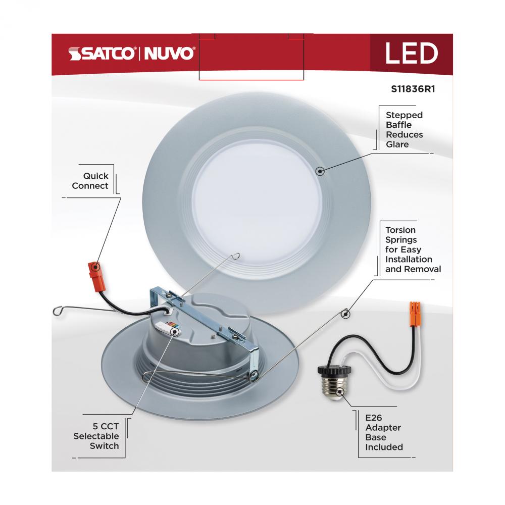 SATCO NUVO's S11836R1 LED Retrofit Downlight is the easy way to convert traditional recessed lighting to high-lumen LED. This 5/6-inch round fixture is sized for, and comes ready with, an E26 base adapter for instant illumination when installed with ex