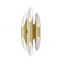 Unified and balanced, Chimes sconces and the complementary chandelier offer an elegant decorative rhythm of angular slashed LED-illuminated tubes composed to maximize the optical effects of metal finishes and light. Chimes presents a dramatic, decorative metal rhythm that invokes classic mid-century interiors. This luxury statement piece can be scaled for residential, hospitality and commercial settings for an enduring modern presence.