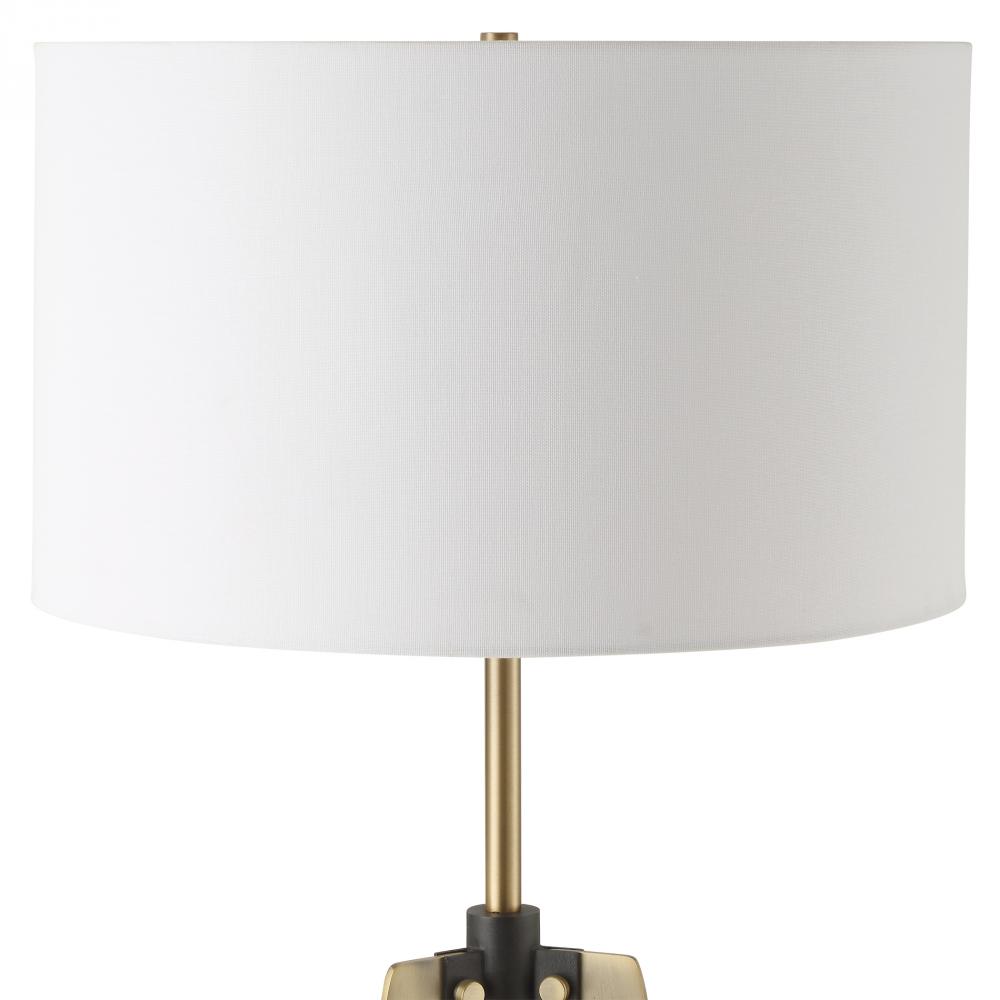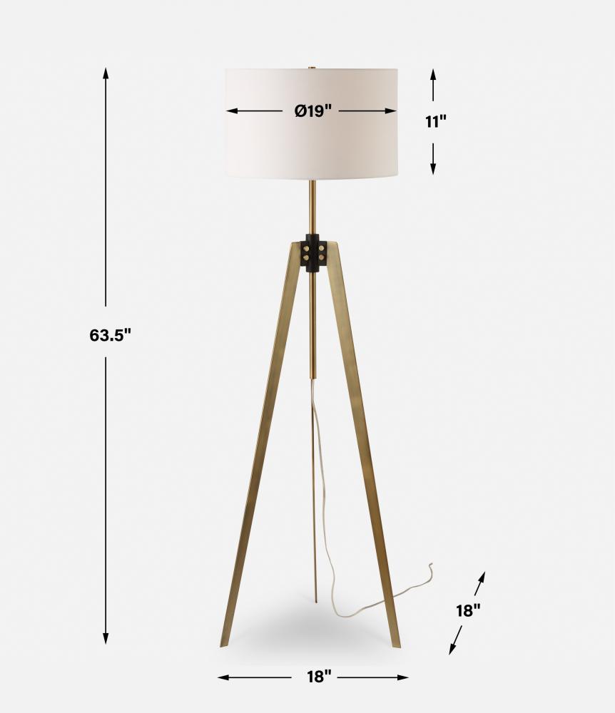 The Anchorage Floor Lamp Is Crafted With Thick Iron Legs Finished In A Plated Antique Brass Exuding A Sense Of Rugged Sophistication. The Addition Of A Casted Black Iron Collar Adds A Touch Of Industrial Flair, Creating A Perfect Balance Of Style And Functionality. The Round Hardback Drum Shade Is Covered In A Crisp White Linen Fabric.