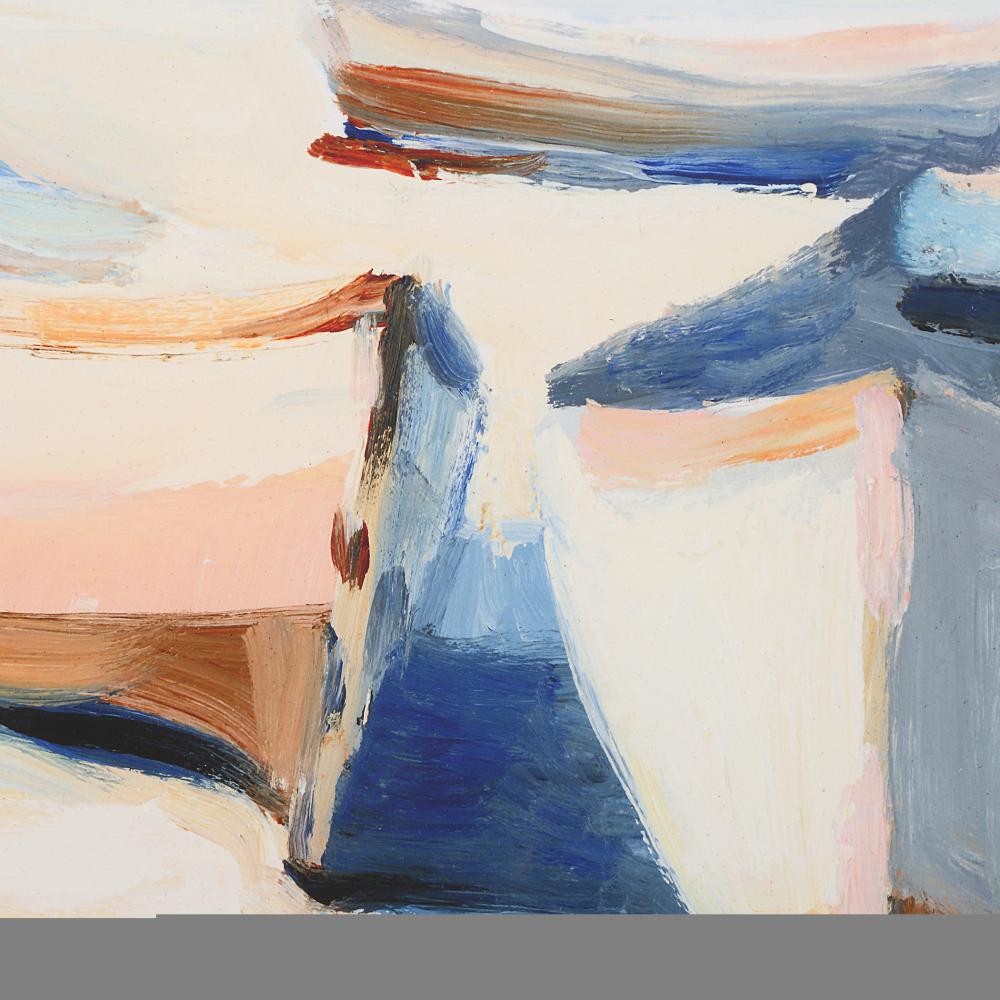 Beached Boats Framed Print Features An Abstract Depiction Of Boats Resting On Serene Sandy Beach, Complemented By A Light Wood-stained Frame With Whitewash Accents And A White Linen Liner. Perfect For Adding A Touch Of Coastal Tranquility To Any Space. Artwork By Ethan Harper.