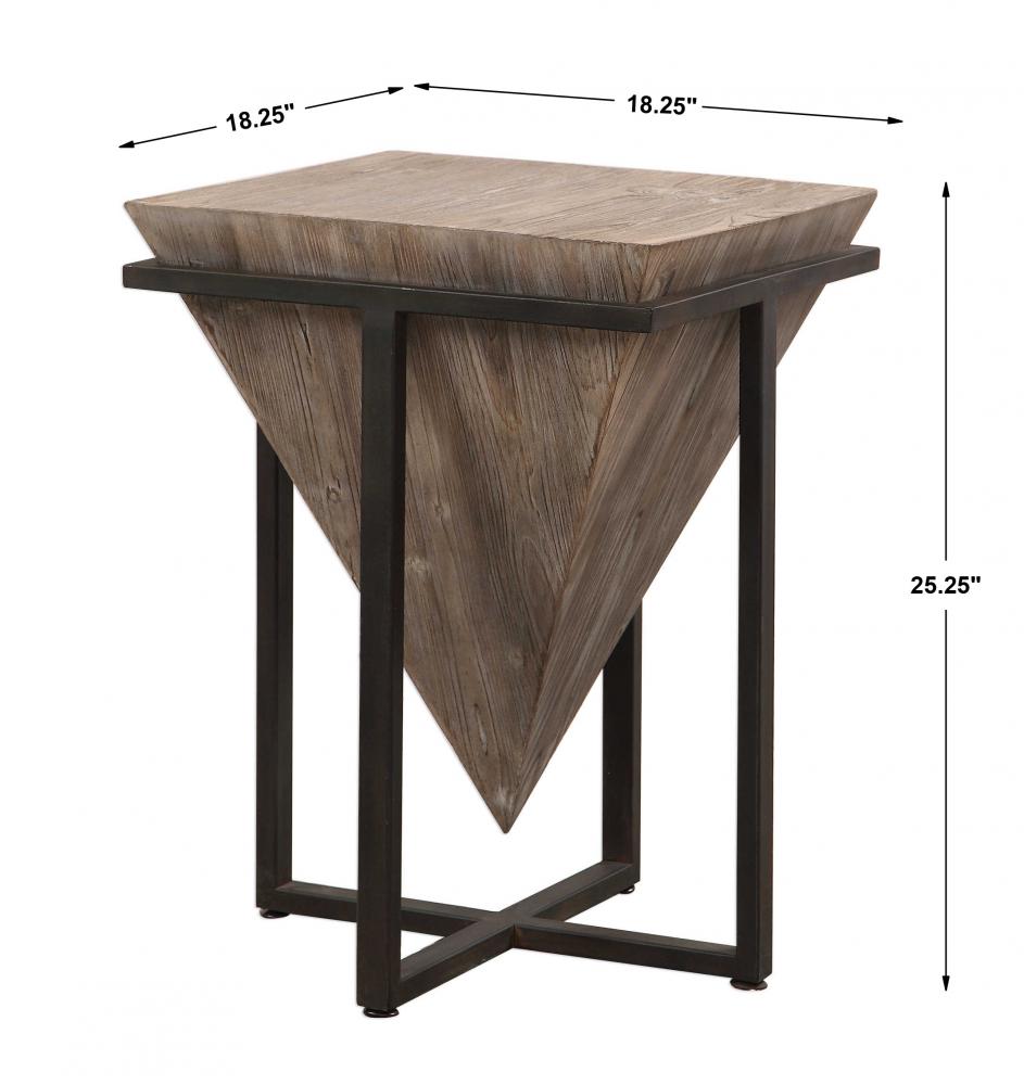 This Upside Down Pyramid Constructed From Aged Fir Wood is Finished in A Heavy Hand Applied Gray Wash, Nestled Into An Iron Base Finished in Aged Black.