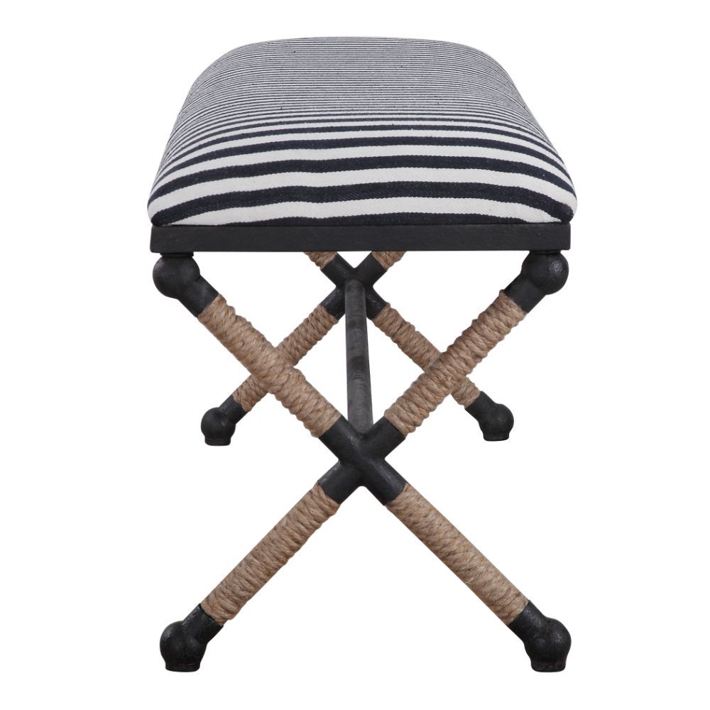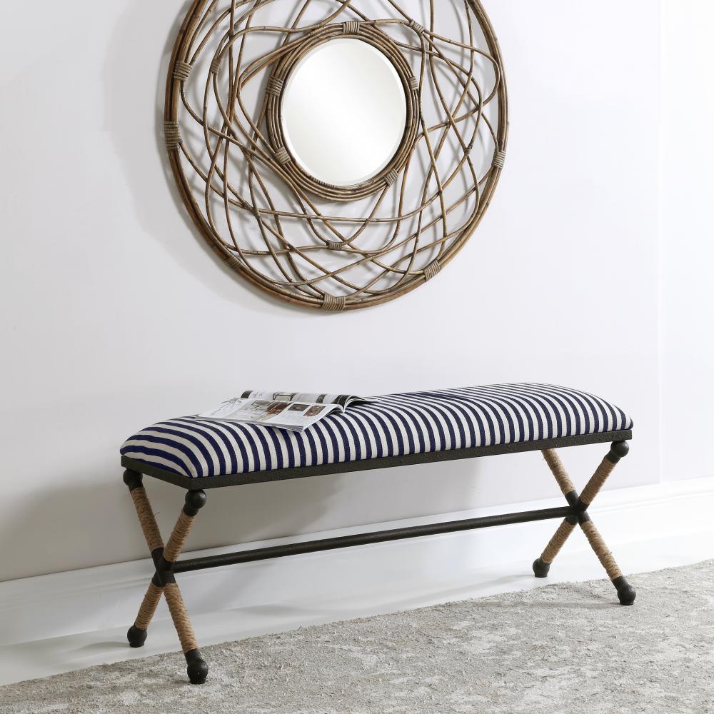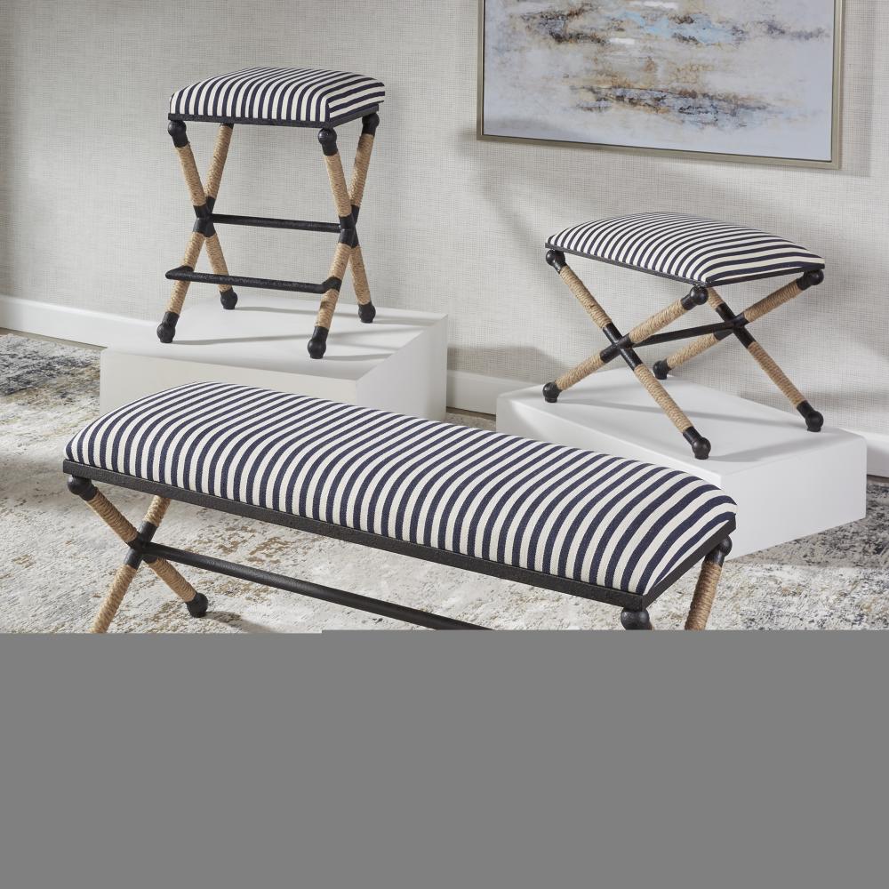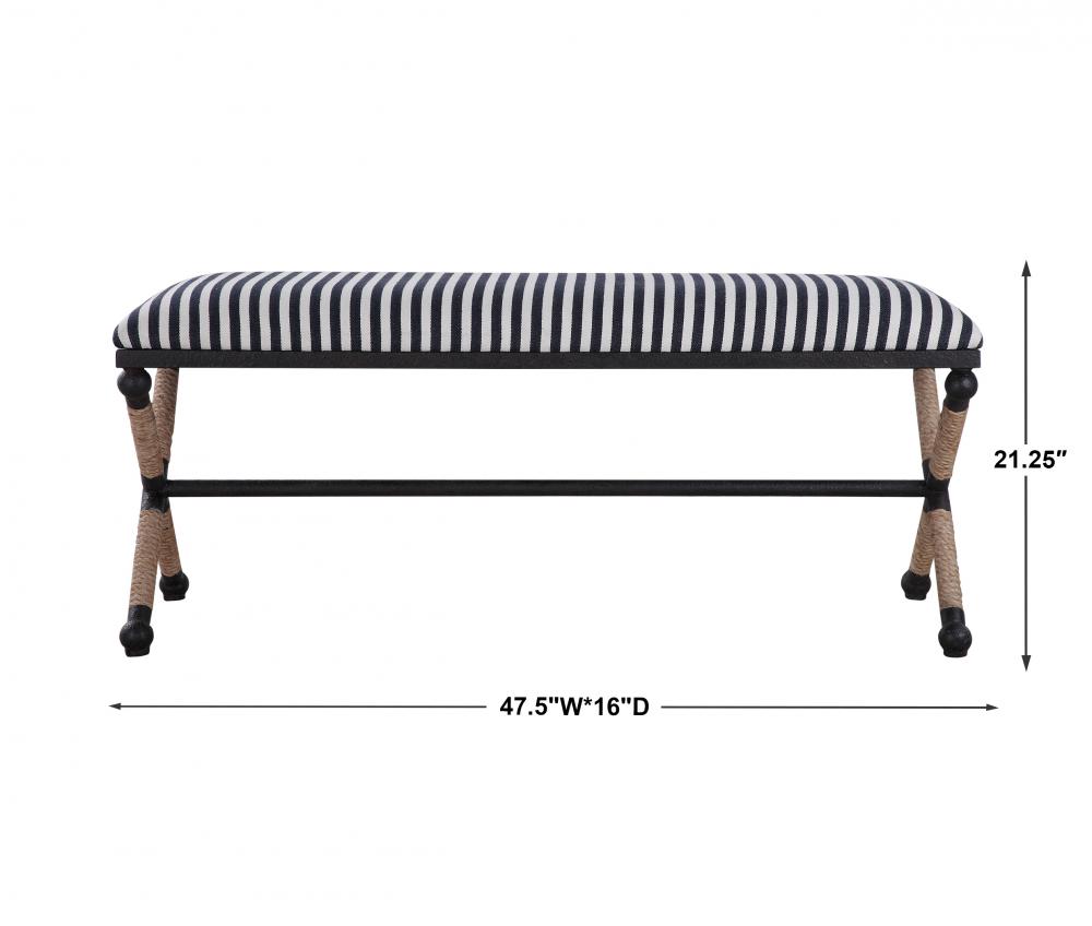 Rustic Iron is Accented By A Cushioned Top, A Sturdy Sailor-striped Cotton in Crisp Navy and Cream.