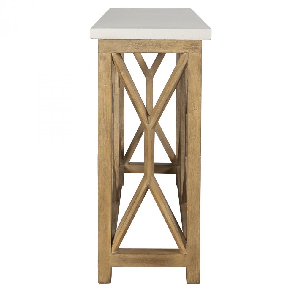 Handcrafted From Solid Mixed Woods with An Natural Ivory Limestone Top, on A Geometric Base Finished in A Warm Oatmeal Wash. True to The Characteristics of Natural Stone, Each Piece Will Have Unique Coloration and Veining. Solid Wood Will Continue to Move with Temperature and Humidity Changes, Which Can Result in Cracks and Uneven Surfaces, Adding to Its Authenticity and Character.