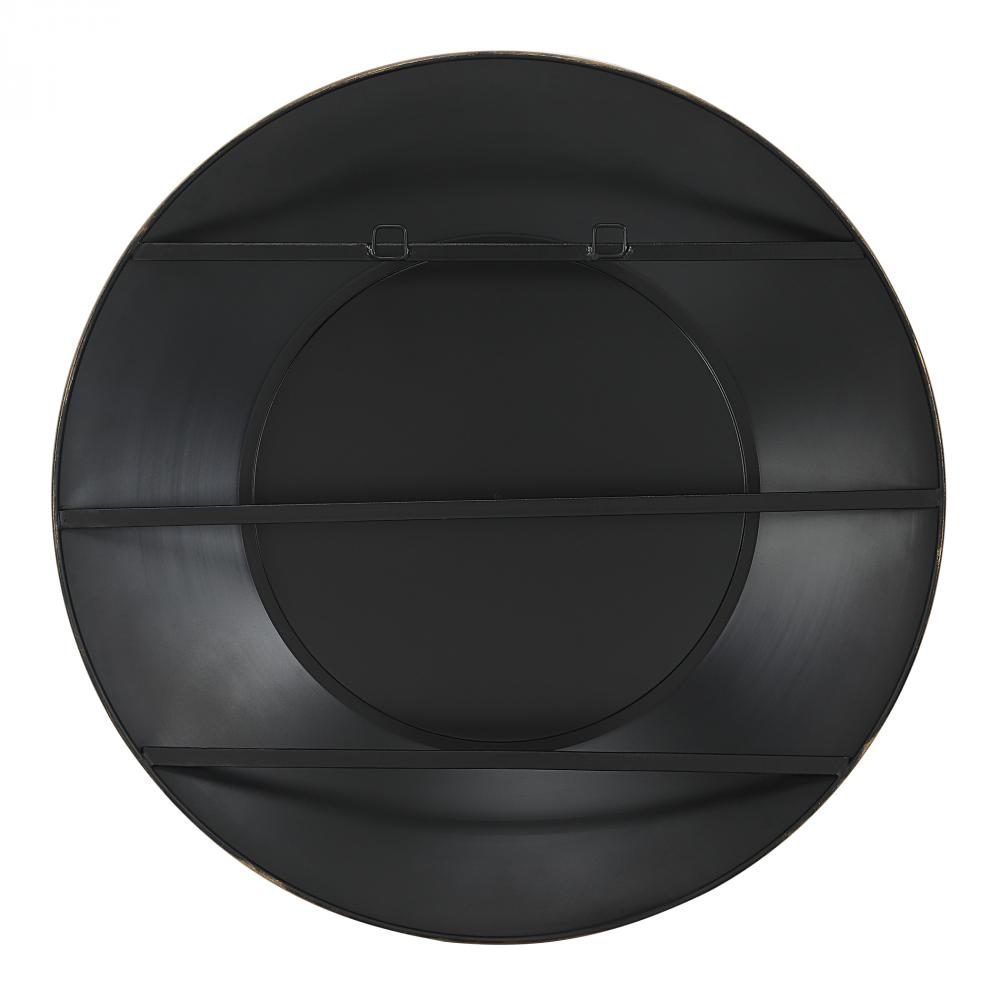 Showcasing A Sleek and Sophisticated Design, The Contessa Round Mirror Features A Curved Antiqued Gold Metal Frame That Surrounds A Petite Beveled Mirror.