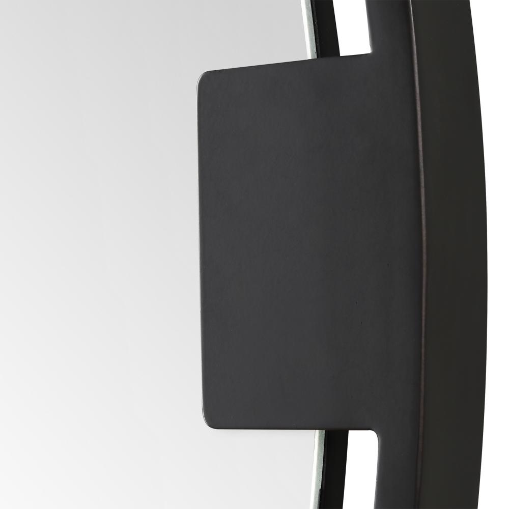 This Round Mirror Is Crafted With A Hefty Dark Bronze Iron Frame, Adorned With Matching Bands That Suspend A Polished Edge Mirror For A Look That Exudes A Timeless Charm That Complements Any Decor Style.