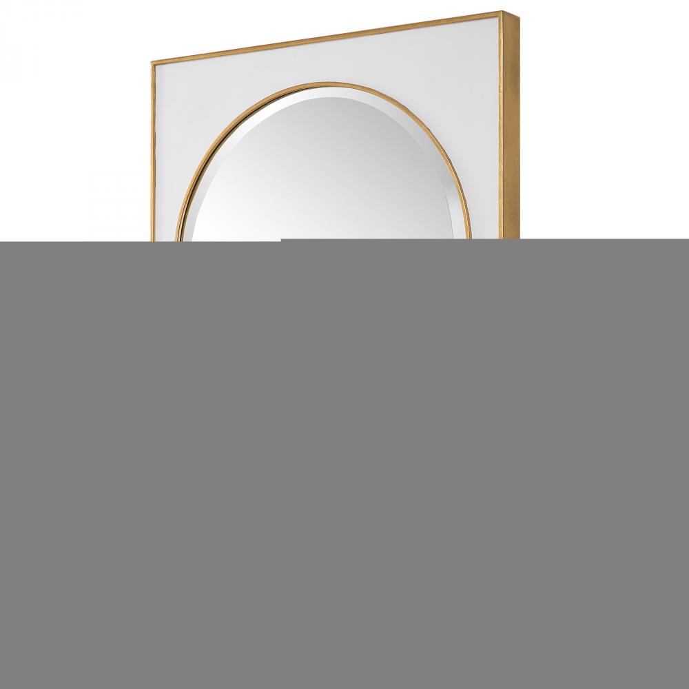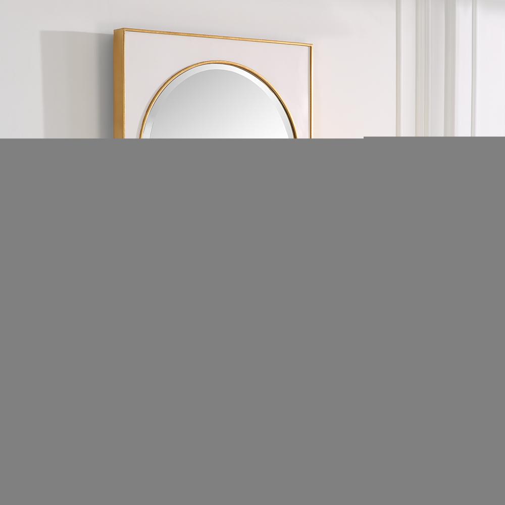 This Iron Mirror Showcases A Gloss White Finish Surrounding The Classic Arch Shape, Accented with Raised Edges Finished in A Lightly Antiqued Gold Leaf. The Mirror Has A 1" Bevel.