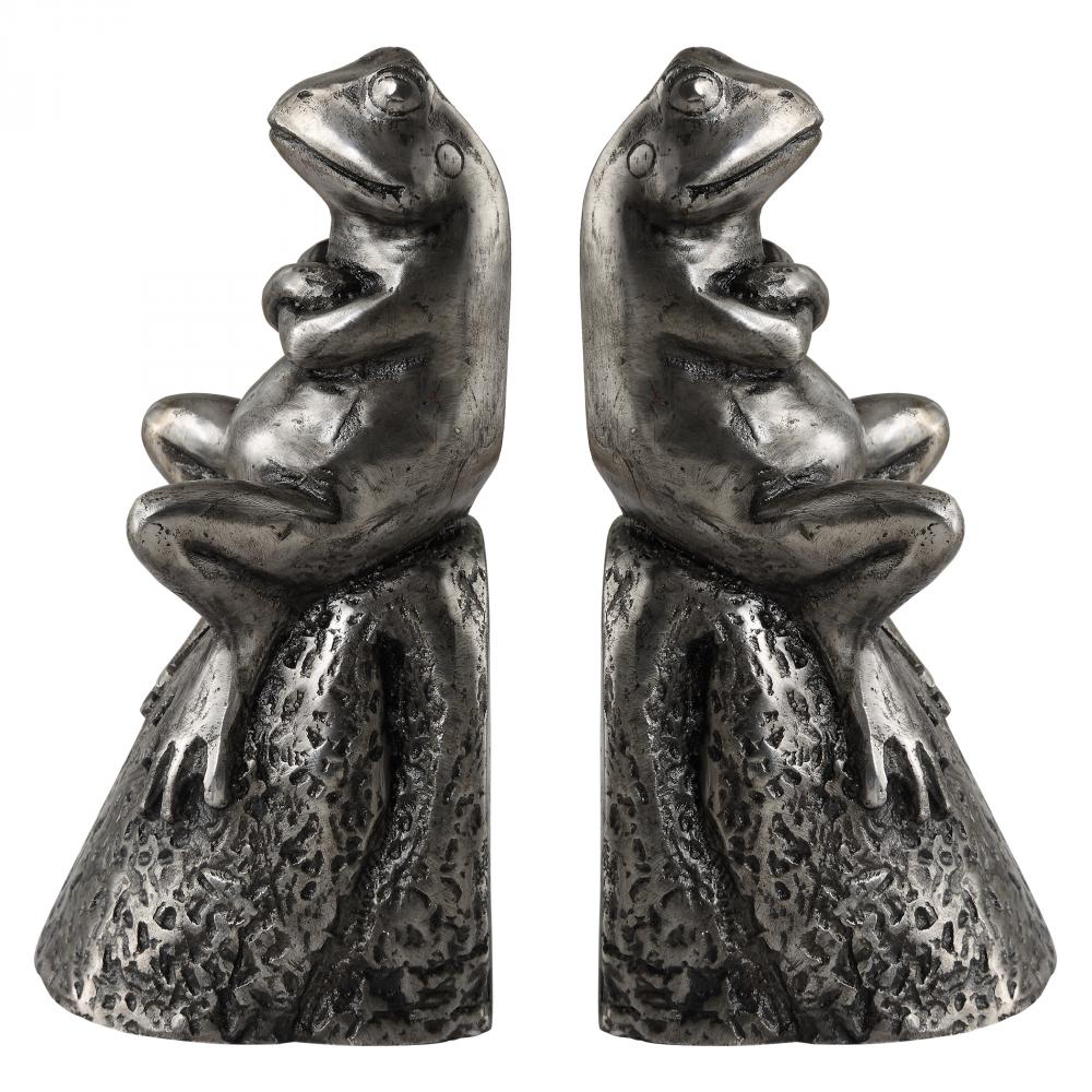Uttermost Daydreaming Frogs Aged Silver Bookends Set/2