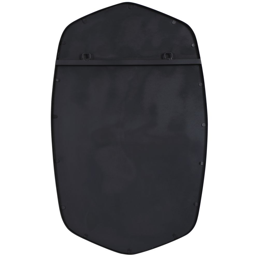 This Hand Forged Iron Mirror Frame Features A Unique Shape with Elegant Curves, Finished in A Streamlined Satin Black. Mirror Has A Generous 1 1/4" Bevel.
