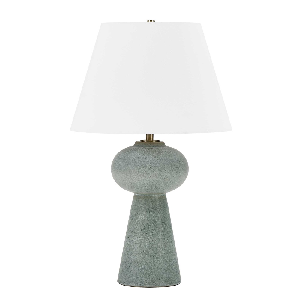 Crafted From Ceramic, This Table Lamp Is Finished In A Sophisticated Light Dusty Blue Glaze, Sporting A Delicate Speckled Texture, Complemented By Antique Brass Plated Accents. The Tapered Shade Is Covered In A Crisp White Linen Fabric. Due To The Nature Of Fired Glazes On Ceramic Lamps, Finishes Will Vary Slightly.