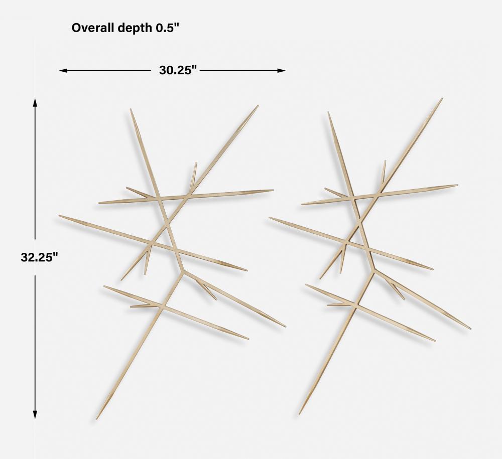 Striking Contemporary Bursts Reminiscent Of Fireworks Allow For A Customizable Display Of Multiple Sets In Any Direction. Constructed Of Iron And Finished In Clean Silver Leaf.