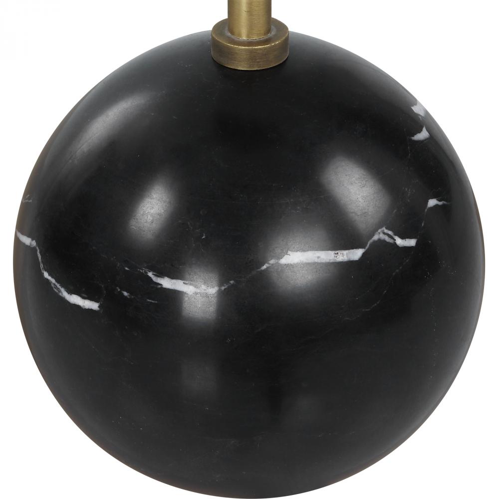 This Sophisticated Drink Table Goes Wherever The Party Goes. An Elegant Honed Black Marble Foot with Natural White Veining Supports The Solid Brass Top Perfect for Holding A Book or Drink. Because of The Natural Characteristics of Marble, Each Piece Will Have Unique Veining Patterns.