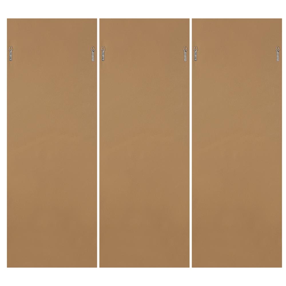 This Striking Triptych Displays An Abstract Design in Rich Shades of Amber and Navy with Pops of Light Sea Foam and Cream. Each Print is Accentuated By A White Linen Liner and A Pine Wood Frame Finished in A Dark Espresso Stain with Rich Wood Grain Texture. Artwork By K. Nari.